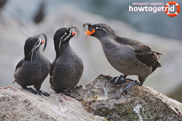 It should be noted that grooms represent a special kind of birds. These individuals have a unique temperament and characteristic features. Birds are unique in nature. They do not belong to monogamous individuals. Moreover, in mating time, the behavior of the auklet is very different from other birds. Bachelors may try to steal the female from the male. Moreover, a loner can do this only when the owner is not nearby.