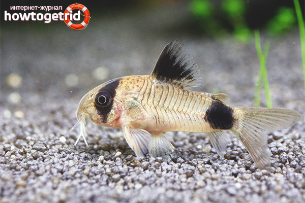 As already noted, these fish are very similar in color to the panda. That is why they have such a name. Their body is light, but sometimes individuals with a slightly pinkish tinge are found. There are three black spots on the body. A spot on the head of the fish frames her eyes. It was this sign that prompted scientists to give the catfish such a name. The second black spot is located on the dorsal fin of the corridor. The third spot is near the caudal fin.