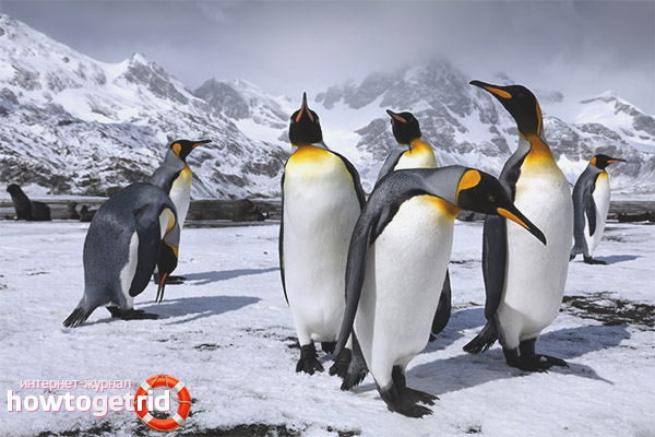 King penguins are understood to be quite large individuals, living preferably in the Antarctic regions of the globe and nearby territories. Usually these flightless birds are found in areas with a sufficient amount of food. According to external data, the penguins are very beautiful and large, a distinctive feature is the orange hue in the head area.