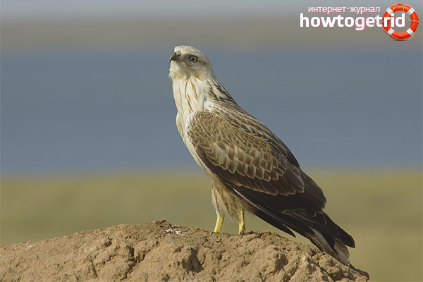 The Kurgan is a bird of prey, the size of an adult reaches 65 centimeters, the width of its wingspan is 160 centimeters, and weight can reach up to 1800 grams. As a rule, the female exceeds the size of the male in length and shape of the wings. This bird resembles an eagle; it has an elongated tail model and long legs.