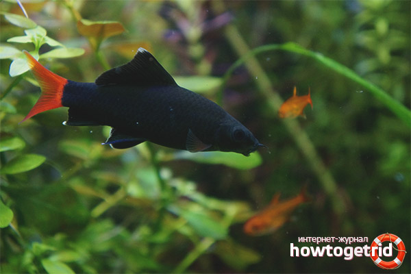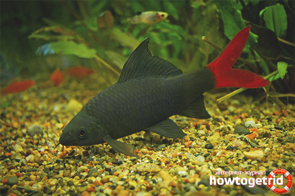 - When a person first sees a labe, he instantly falls in love with him. This is due to the beautiful color of individuals of this group. The bicolor has a black matte body that resembles velvet, and the tail fin is red. It looks impressive against the background of the remaining fish in the aquarium. The body format resembles a shark, some foreign breeders have given the labeo another name - a two-color shark.