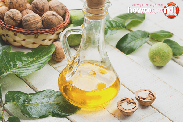 In addition, the composition perfectly warms, so pure walnut oil can be used in the fight against diseases of ENT organs. Put a couple of drops in the ear, cover with a cotton swab, and you can relieve inflammation with otitis media and get rid of painful lumbago in the ears.And if you hold the oil in a water bath, then the pure composition can be used in the fight against conjunctivitis.
