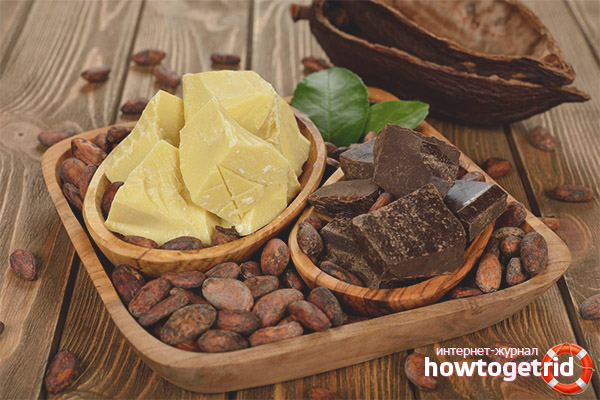 - Cocoa butter copes with inflammation of weathered or frostbitten skin. It is necessary to lubricate the affected areas to remove discomfort.