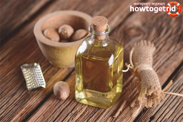 - Compresses: Nutmeg oil (5 drops) are combined with the base (10 ml), heated, applied to the injured area.