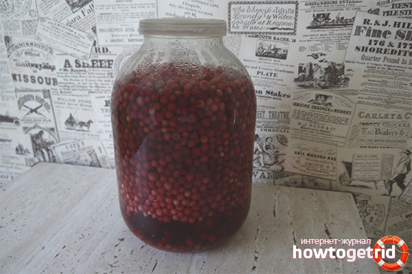 - Distribute the berries in jars. Pour the brine to the brim. Close the capron and store it in the basement for 1 week. Then move the workpiece into the cold.