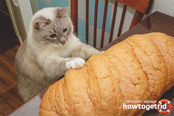 Before giving a cat a piece of a purchased treat, it is important to study its composition; a high content of salt or sugar is also highly undesirable and can negatively affect the general condition and appearance of the animal. In addition, do not forget that the basis of the diet should be animal products, not bread.