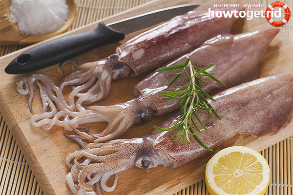 Squid meat is not so harmless as it seems at first glance. If they were grown industrially or were caught from not the cleanest reservoirs, then squid carcasses, in addition to protein, may well contain not the most useful substances. Namely: salts of heavy metals, radiation, toxic substances. In the case of buying frozen carcasses, it is difficult to determine how fresh they are. With periodic and repeated thawing, useful substances disappear, and the meat loses its structure.