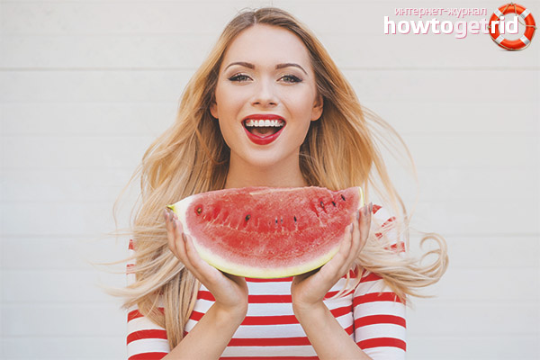 - A high-quality watermelon provides the female body with almost all the necessary substances. This allows you to increase the resistance of cells to the action of free radicals. In addition, regular consumption of the product has a positive effect on the skin condition and overall appearance. The woman looks rested and fresh.
