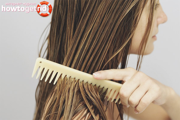 - Due to the fact that after washing the head most of the water penetrated the core of the hair, the strands become much heavier. Accordingly, when the hair is combed, it pulls out instantly, therefore, the head looks "liquid".