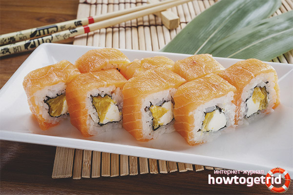 In fact, all the ingredients of rolls are useful products that contain a lot of valuable and necessary substances. This is especially true for a woman who is exhausted by pregnancy, childbirth and lactation. However, this product can be very dangerous if made from stale fish. The fact is that only raw fish is used in the preparation of the rolls. But it, as a rule, is very capricious - it quickly goes out, requires certain storage and preparation conditions. Even in the sanitary standards it is indicated that in the place where the rolls are prepared, there must be a certain air temperature. That is, so that the fish does not deteriorate, it is cooked in a cool room.