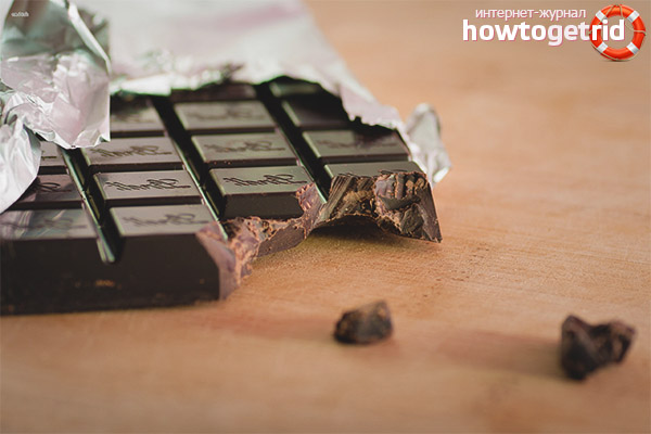 - It is recommended to eat chocolate for people with this ailment during an active life. This refers to sport, immediately after training, a feeling of fatigue appears, it tends to sleep. To restore strength, it is recommended to eat a couple of chocolate cubes after 1.5 hours after class. It will increase efficiency, prolong the feeling of satiety.