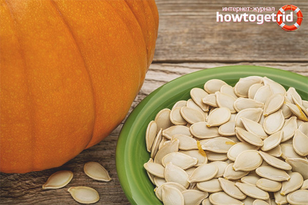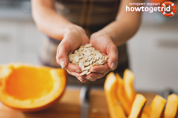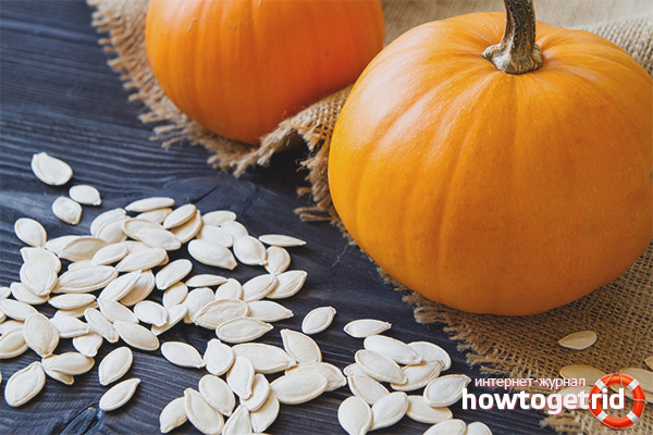 To prepare the product, you will need peeled pumpkin seeds, which you need to grind to a powder state and pour a glass of not too cool boiling water. Such a decoction is infused for an hour. After complete cooling, it is filtered, taken in a glass in the morning and in the evening. To prepare a daily portion of the broth, you need to take 500 ml of water and 65 g of crushed pumpkin seeds.