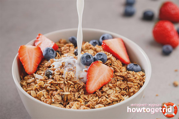 The loss of extra pounds has a beneficial effect on all body systems, the load on the heart, liver, joints, blood vessels decreases. The emotional state is stabilized, self-confidence appears, well-being improves. Muesli is actively involved in these processes, especially if cereal seedlings are added to them and third-party additives are not observed. Breakfast, consisting of a dry mix of cereal with the addition of liquid, is capable of: