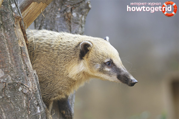 The rhinoceros is also called coati, they belong to the representatives of the raccoon family. As the name implies, the external features of the animal have a certain zest. They have a long nose that distinguishes the nasal from the like. Individuals live preferably in Central and South America, are favorites of local residents. Animals are even kept at home as obedient and good-natured pets. But we will not immediately reveal all the cards, we will study the most important aspects in the next order.