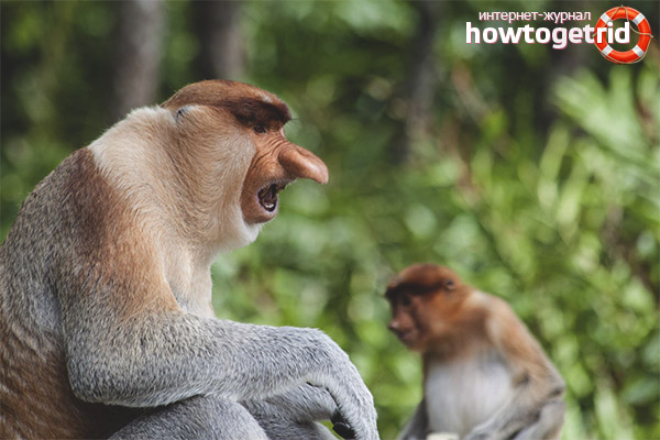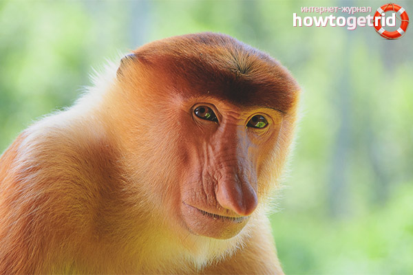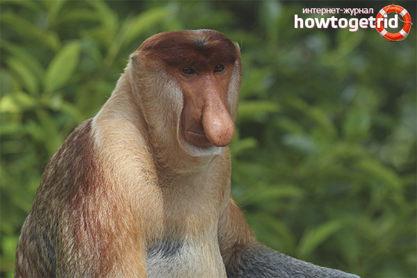 The nosy monkey, or as this species of Kachau primates is often called, has the most unusual appearance among its relatives. The name kahau comes from the characteristic cry that the animal emits at the moment of danger. Nosach is one of the rarest species of primates currently living on earth.