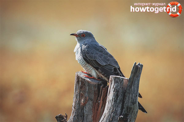There is another opinion, how the cuckoo manages to throw its eggs into other people's nests. The color and plumage of the male is a bit like the plumage of a hawk. Taking advantage of this, he flies over the nest, makes several circles, the owners begin to panic and hide in fear in the foliage or in the grass, leaving the masonry unattended for several seconds. This time is enough for the female to throw another's egg and lay her own. Returning hosts see whole eggs and continue to hatch.