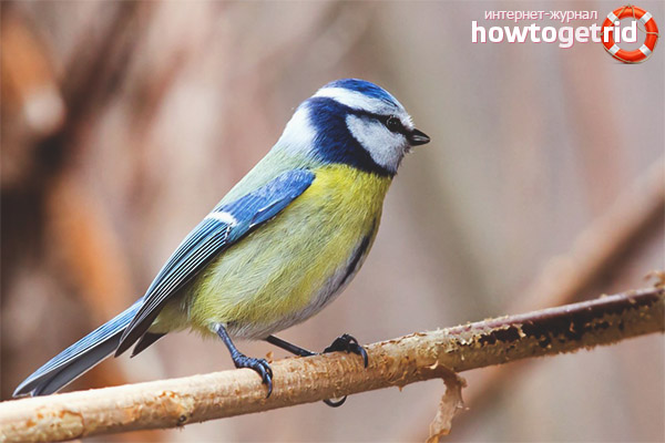Under the common blue tit is understood a tit, the plumage of which is pigmented with a yellow-blue tint. These individuals are especially common in African and Asian countries, and they also live in Europe. They choose exclusively deciduous or mixed forests for permanent residence, like birch trees and oaks.