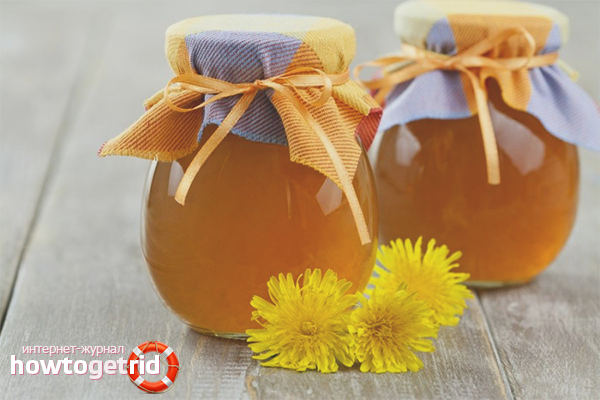 - Dandelion-based jam is also called honey because of its special consistency. Such treats are allowed even for people allergic to beekeeping products. In addition to taste, the treat is endowed with healing properties. It is taken with seasonal vitamin deficiency, colds and flu. The composition quickly enhances immunity.