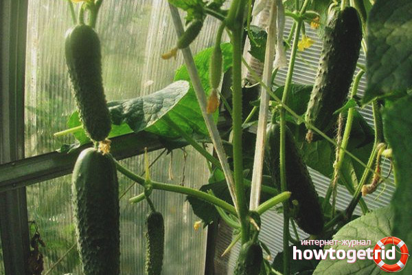 - Regular treatment with a mixture of fungicide and insecticide against diseases and pests is important. Moreover, chemicals need to be processed before the flowering of cucumbers. After the appearance of the ovary, treatments are only desirable with the use of practically safe biological products.