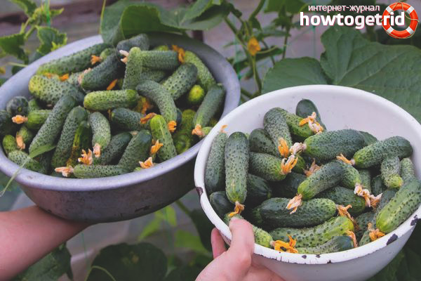 In order to remove pickles from the bush, you need to start harvesting when the cucumbers are stretched to 3-5 centimeters. If you want to remove the gherkins, then you should wait a bit when the fruits become 5-8 centimeters long.