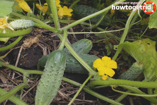 Plants need to get enough water and fertilizer. Watering is done after sunset or in the morning. Water for irrigation should be well warmed up in the sun. During flowering and fruit ripening, water consumption for irrigation increases. For cucumbers, the drip method is best suited. For feeding, you can use urea or mullein. The prepared solution is watered with bushes.