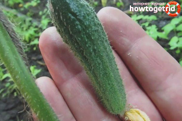 As for the fruits, their length reaches 9 centimeters and their weight is 90 grams. The peel is covered with small tubercles and light longitudinal stripes. One cucumber contains many useful trace elements - they have a positive effect on the gastrointestinal tract, remove cholesterol and toxins from the body.