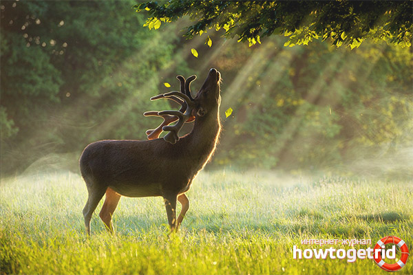 The deer does not wear such beautiful, enthralling horns all his life. For the first time, such beauty grows at the age of five, and from the age of 12 the horns become weaker, and the crown is less and less. Usually, animals drop their horns in the spring from March to the end of April, young horns become stiff for three months.