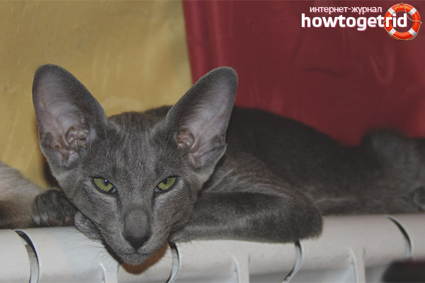 In addition to all these qualities, these pets have one more thing: they really like to eat. Such love, if not limited, may well lead to obesity of the animal. Orientals are omnivorous, but it is better to use special feeds and calculate the amount. It is best to give portions of 30 g per 1 kg of weight. Do not overfeed the animal. Two meals a day will be enough to maintain active life.