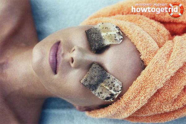 - Tea compresses. Both black and green varieties are suitable. The composition of tea contains caffeine and tannin - these components contribute to the narrowing of blood vessels, reduce swelling, as they have an astringent effect, eliminate swelling of the skin. Speaking of remedies for eye swelling, one cannot but mention chamomile tea. The product effectively fights inflammation, has a calming effect, relieves irritation, redness and swelling. You can remove puffiness if you apply cotton pads to the eyelids, after moistening them in freshly brewed tea.