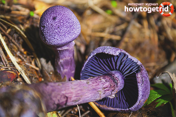 In addition, in nature there are some species similar in color to a cobweb, painted in a wide range of shades, from lilac to blue - they are all inedible, even if they are not poisonous. To distinguish a real purple cobweb from them is quite simple - for this you need to carefully look under the hat - the plates should have the same color as the rest of its surface, and from above there should be either a web-like coverlet or its remains. Another distinctive feature is the clearly visible bands located around the legs.