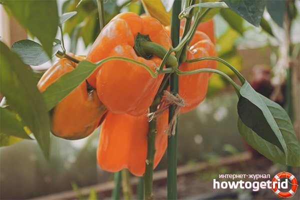At the end of July, flowers and buds are cut off, leaving only ovaries. Pinch the ends of the branches to stop their growth. These measures will allow you to get a good harvest of large fruits. Otherwise, the peppers will be small.