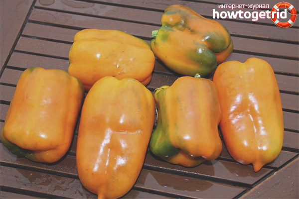 - Pronounced pepper aroma, sweet taste, juicy pulp with a pleasant aftertaste even in green fruits. For full coloring of mature peppers it takes 2-3 weeks, sometimes a month. You need to have patience so that the peppers become like in the picture - orange handsome.