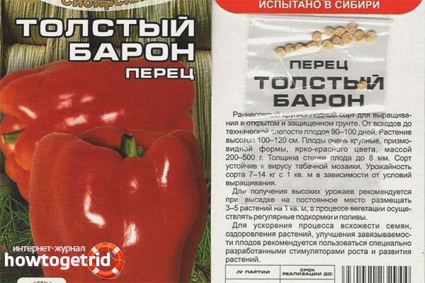 The variety of bell pepper Fat Baron is characterized by a high dry matter content, fleshiness and balanced carbohydrate content. Fruits are large spherical in shape, walls up to 1.5 cm, in the seed chambers a small amount of seeds. Seeds can be harvested for sowing in subsequent years.