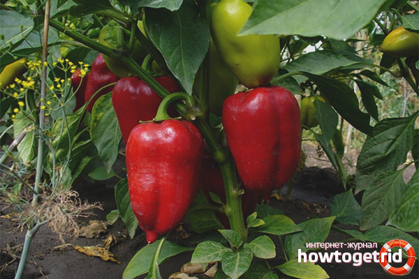 Before planting peppers in a permanent place, the soil is cultivated and fertilized. Seedlings are carefully removed from the containers, being careful not to damage the roots. It should be remembered that the distance between the bushes should be at least 50 cm. The most convenient option is to plant when the holes are staggered. This will provide all plants with good lighting and ventilation. Warm water is poured into the recesses and, slightly condensing, slightly sprinkled with earth. Additionally, you need to mulch the soil with humus or peat.