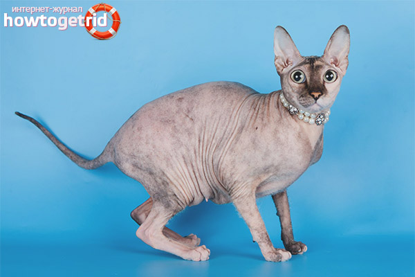 - Bald - the cat has absolutely no hair. The body of the animal resembles rubber, which is due to skin secretions.