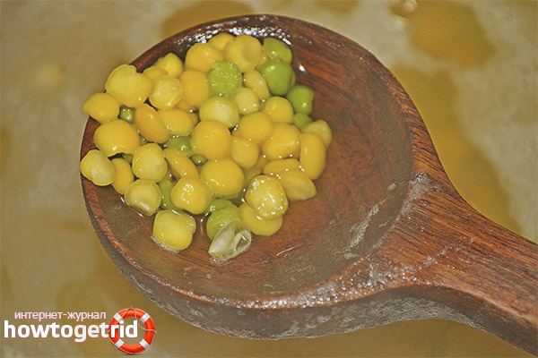 - While cooking, systematically stir the composition and remove the foam. If the kernels are in no hurry to fall apart, this indicates that old peas are used. In this case, add a small amount of soda.