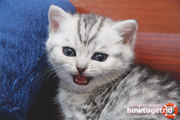 But there are times when kittens meow, when they go to the toilet everywhere in a row. This may be due to the presence of a disease of the diuretic system or cause malnutrition. In any case, you need to monitor the kitten's diet, because at this age their body is extremely weak.