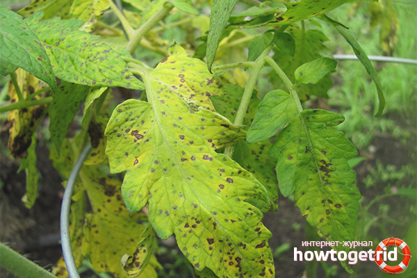 Signs Leaves brighten from the central vein. Then they turn yellow, dry and fall on their own. Ailment begins from below and gradually creeps to the top of the head. If you leave the matter to chance, then the tomato will quickly die, simultaneously infecting all nearby neighbors.
