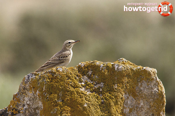 - Field horse. This small bird lives in Eurasia, as well as in the north of the African continent. Her plumage on the back is painted in brown, sandy, yellowish tones with dark spots. The abdomen is light, and on the sides and breast the plumage has a brownish tint. In young individuals on the upper part of the body can be seen a pattern in the form of scales.