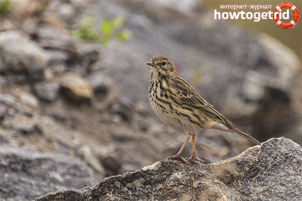 - Meadow horse. Representatives of this species externally resemble forest skates, only their sizes are slightly smaller (up to 15 cm). The color of the plumage is dominated by gray tones, and the breast has a light yellow hue. Thin stripes pass over this background. Individuals of this species have a thin, sharp beak and red legs. These migratory birds nest in swamps, meadows. They prefer places with high humidity. In winter they migrate a little south of their usual habitat.