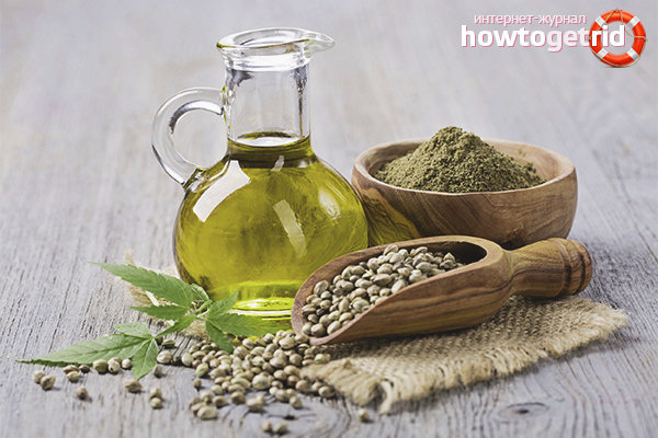 - If you use hemp oil as a dressing in various dishes (no more than 50 ml.), You can quickly forget about menstrual pains. Also recommended for men. As a result, the product will prevent the formation of genital cancer, prostate adenomas and impotence.