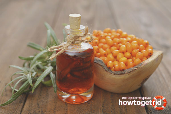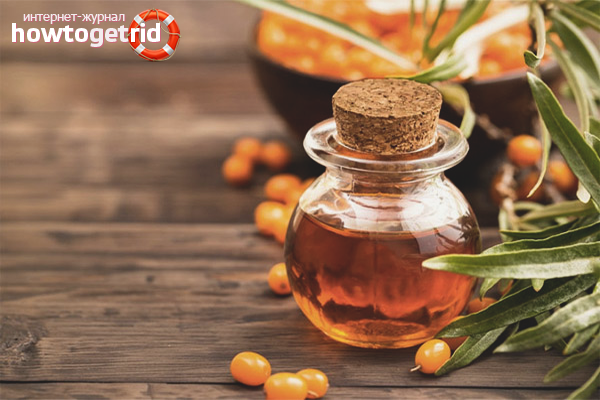 - With skin lesions. As mentioned above, sea buckthorn oil has regenerative properties.If you need to rid the epidermis of microcracks, cure large abrasions or wounds, lubricate the damaged areas with oil 4 times a day.