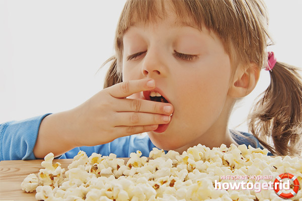 - To fully control the situation, for the first time give your child just one little popcorn. Observe the baby’s reaction. If you have not noticed anything bad, sometimes indulge your child with such a treat. Do not allow uncontrolled eating. At the first sign of a food allergy, consult your doctor if necessary.