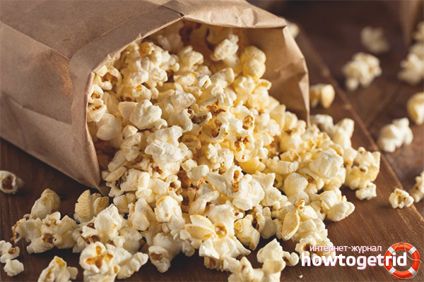 - The final product is high-calorie, almost nothing remains of the benefits. At the same time, the appearance of popcorn is of no small importance. Recently, dyes have been used in its preparation. Such products, respectively, will harm not only the younger, but also the older generation.