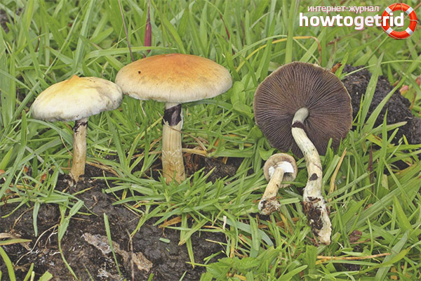 - Psilocybe fimetaria. Differ in that at the edge of the cap the remains of the bedspread are larger in size. Often this mushroom can be seen in horse manure.