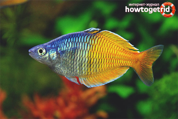The Boeseman rainbow is also called melanotenia; it appeared relatively long ago among other aquarium pets. The fish is characterized by activity and nondescriptness, until it reaches puberty. The fish grows up to 14 cm, so it is difficult not to notice it. Experienced aquarists know firsthand that a gray, nondescript fish can be turned into a bright individual. It is enough to adjust the nutrition, provide the cat with everything you need in the aquarium.