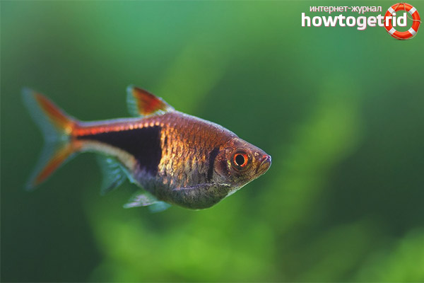 The parsing family has about 50 different species. The most popular for aquarium maintenance are heteromorphs or wedge-shaped species. They have miniature sizes and a bright spectacular color. The body length of these fish does not exceed 4 cm. They have a copper-colored body and a large black wedge-shaped speck on the body. It was the color that caused the name of this species. These fish live from 3 to 4 years.