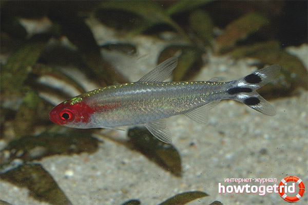 The appearance of these fish makes many people want to get them in their aquarium. The rhodostomus has an elongated graceful body. The length of an adult is about 4.5 cm. They live about 5 years. The most attractive feature of this beautiful fish is the presence of a red spot located on its head. Hence its second name is the red-headed tetra.
