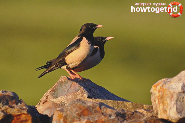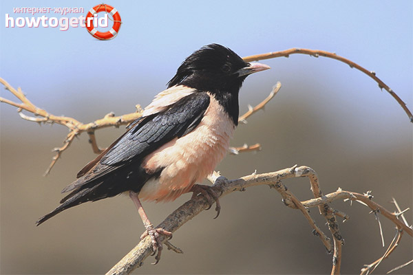 Under the pink starling is understood quite interesting in its external characteristics of the bird. Representatives of the family prefer to build nests in rocky terrain, as well as in the crevices of stone buildings. They are found in mountainous areas, near ravines and other places of this type. Separate couples who want privacy and a quiet existence, occupy empty hollows in the trees.