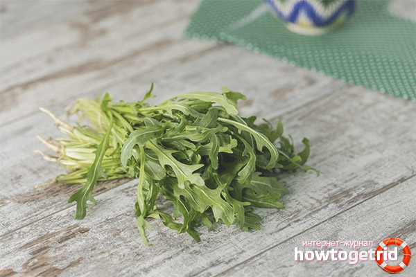 Arugula well supports the body during diets and physical activity. To lose weight by eating these juicy leaves, it is enough to reduce the content of heavy carbohydrates and fats in the diet, consume protein foods and vegetable dishes.